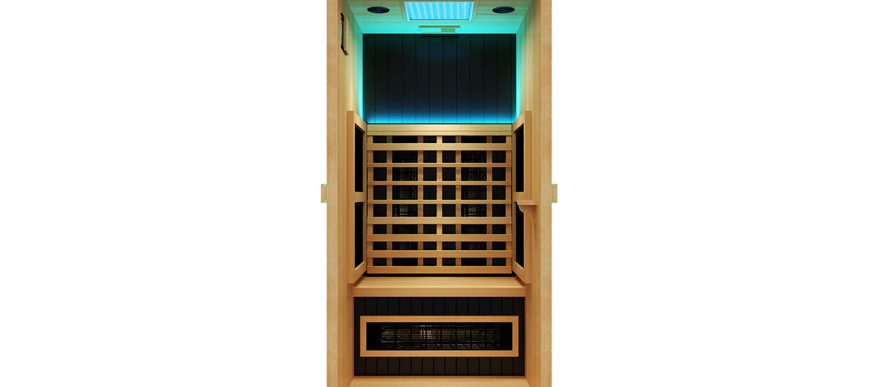 FINSAUNA’s Radia IR line is a marvel of infrared technology, featuring full-spectrum heating with near-, mid-, and far-IR wavelengths. High-tech infrared heaters deliver powerful therapeutic benefits, complemented by medical-grade red light therapy and soothing chromatherapy. Constructed from premium Canadian hemlock and featuring beautiful full front glass, Radia IRs provide a rejuvenating, immersive sauna session powered by innovation.